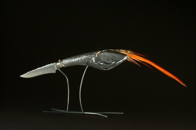 Le Faisan - My Precious Argent, or 18k, plume de faisan Silver,18k gold, feather 16.5 cm 2004